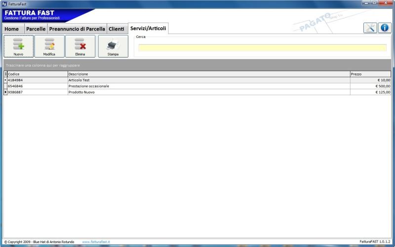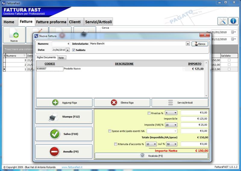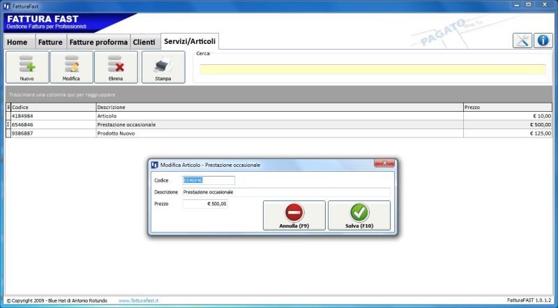 Cos'è Fattura Fast Caratteristiche e Funzioni ScreenShot Assistenza/Personalizzazioni Contatti Acquista Download Gratuito